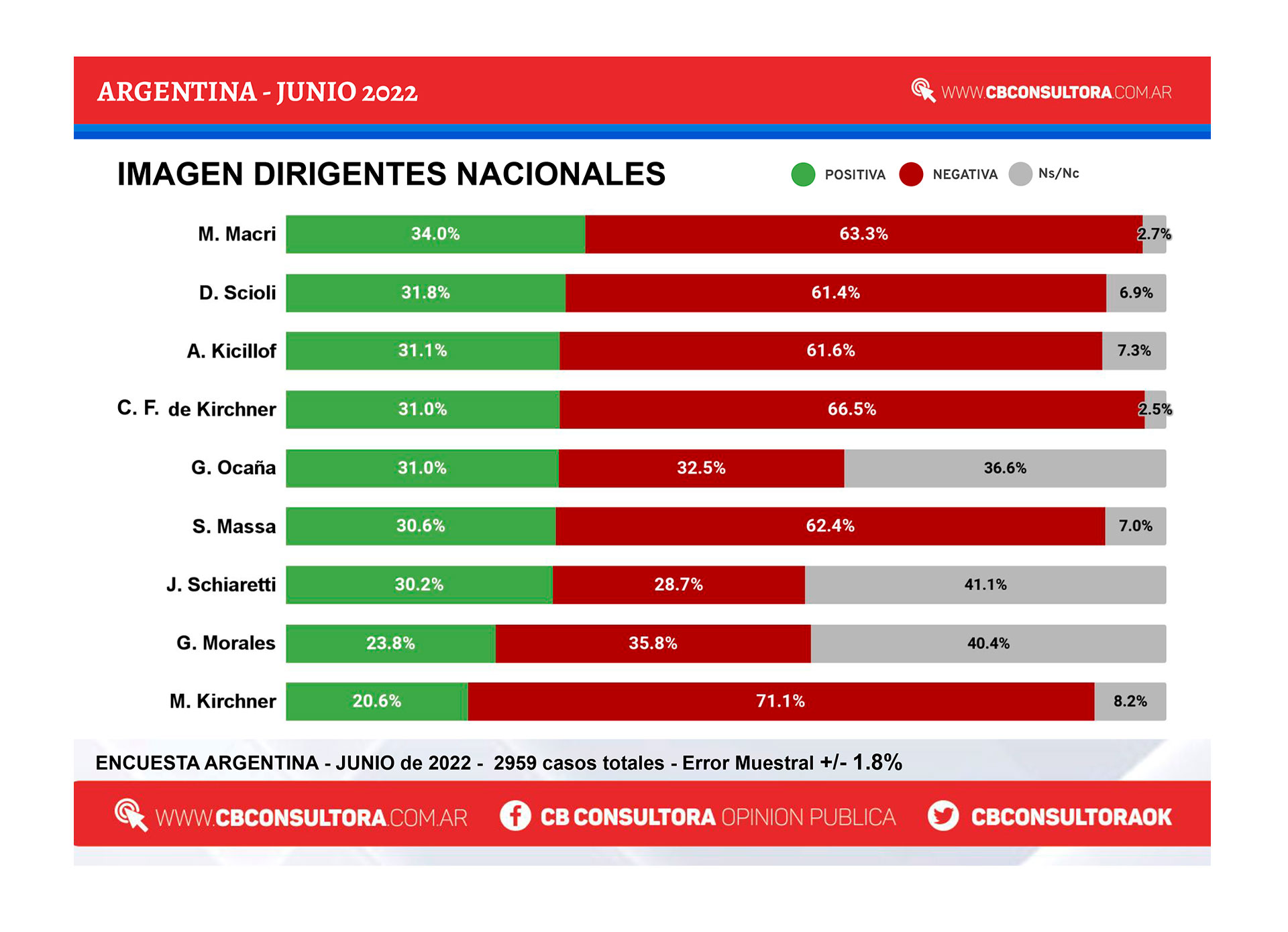 De la encuesta también se desprende que el jefe de Gobierno porteño, Horacio Rodríguez Larreta es el dirigente nacional con mayor imagen positiva ubicándose en el 54,5%, mientras que el que ostenta la imagen negativa más alta es Máximo Kirchner con el 71,1 por ciento.