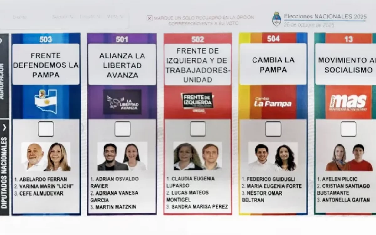 Esta nueva compulsa electoral cuenta con cinco listas en competencia, precisamente: “Defendemos La Pampa”: Abelardo Ferrán, Varinia Marín y Ceferino Almudévar; “Alianza La Libertad Avanza – PRO”: Adrián Ravier, Adriana García, Martín Matzkin; “Cambia La Pampa” (Radicalismo): Federico Guidugli, María Eugenia Forte, Néstor Omar Beltrán; “Frente de Izquierda”: Claudia Lupardo, Lucas Mateos Montigel, Marisa Pérez; “Movimiento al Socialismo”: Ayelén Pilcic, Cristian Bustamante, Antonella Gaitán.